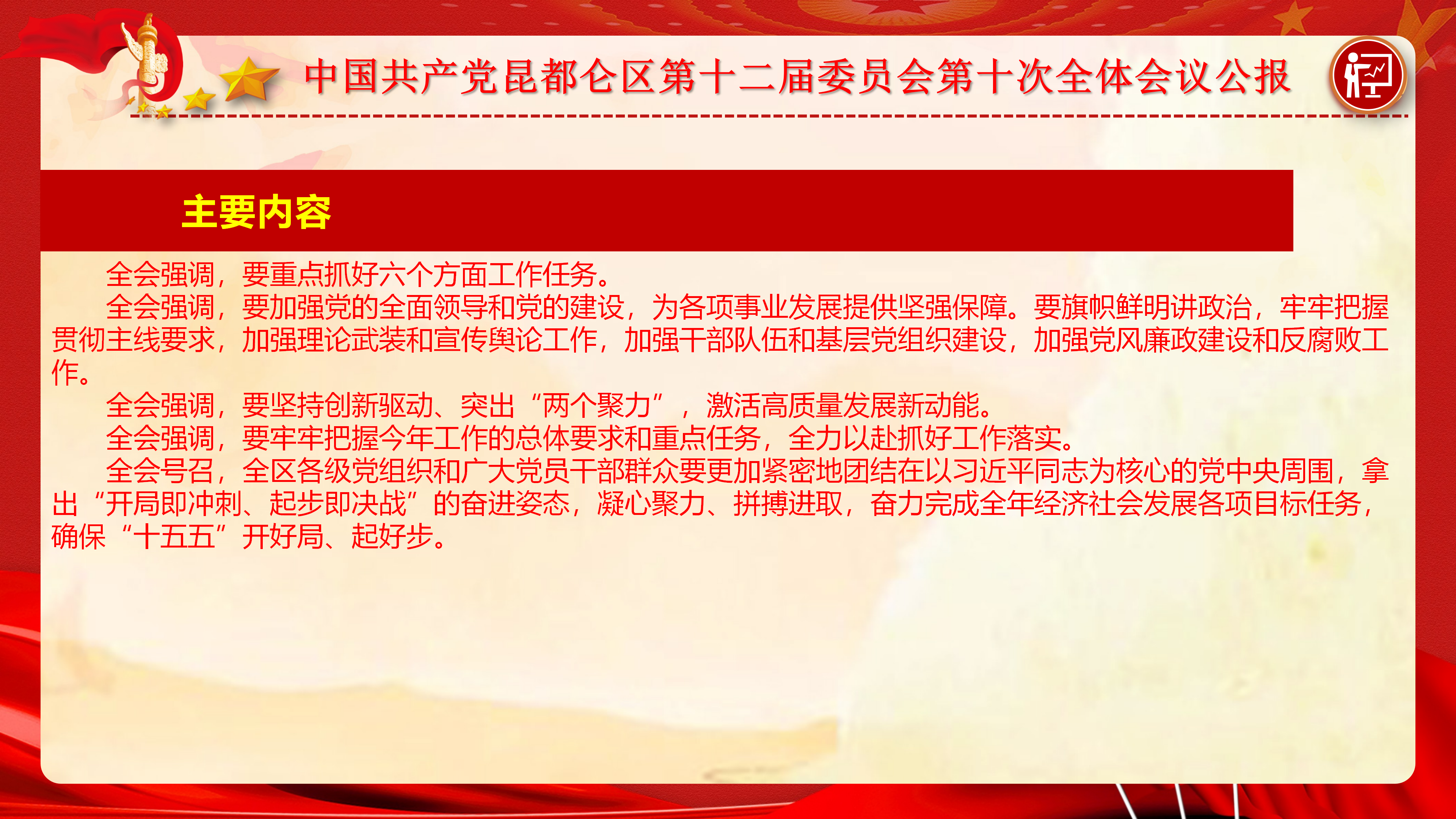 中国共产党昆都仑区第十二届委员会第十次全体会议公报(图解)