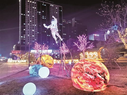 昆区世纪广场的太空主题彩灯让人眼前一亮。□文记者梁晶晶图记者宫伟恩“真好看,我们拍张照片吧!”在希望广场上拍照的市民姜女士说道。近日,昆区住...