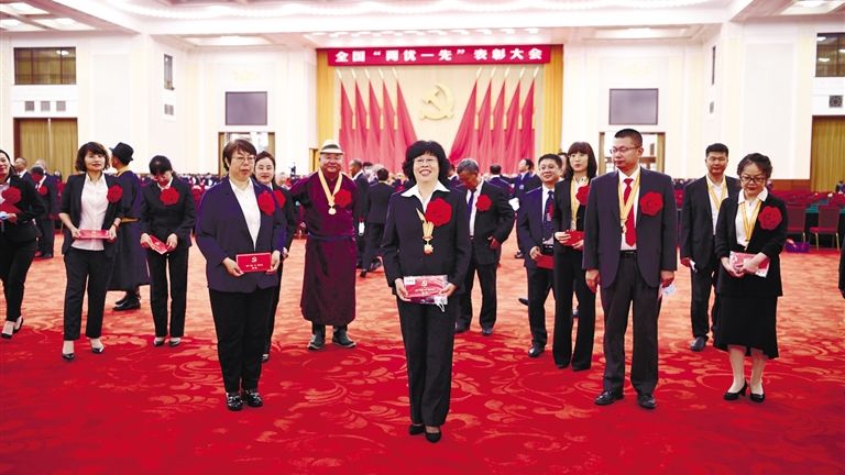 吴秀凤(中)在全国“两优一先”表彰大会现场。记者吕学先 111栋楼,哪个犄角旮旯有啥问题,她了如指掌;6830户家庭,哪家有大事小情,一定首先想到...