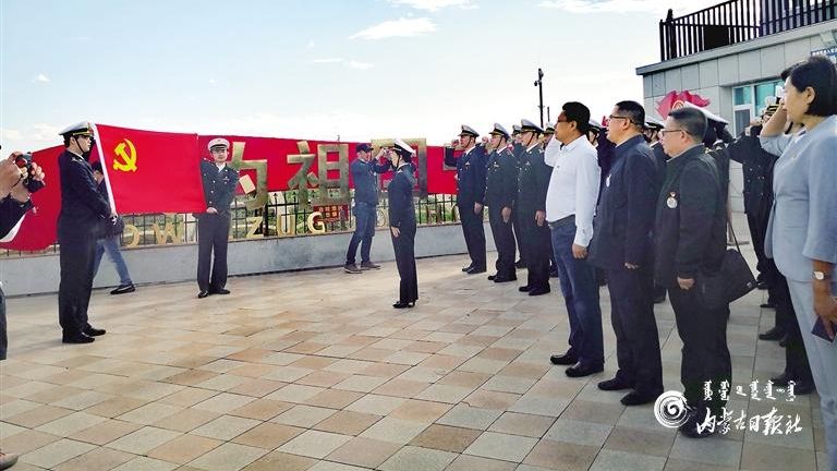 国门下的宣誓。编者按在举国上下庆祝中国共产党成立100周年之际,内蒙古日报社推出“‘永远跟党走’——草原云·百名记者万里行...