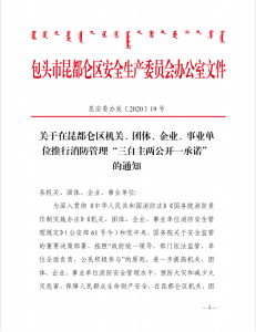 昆安委办发[2020]19号关于在昆都仑区机关、团体、企业、事业单位推行消防管理“三自主两公开一承诺”的通知各机关、团体、企业、事业单位:为深入贯彻《...