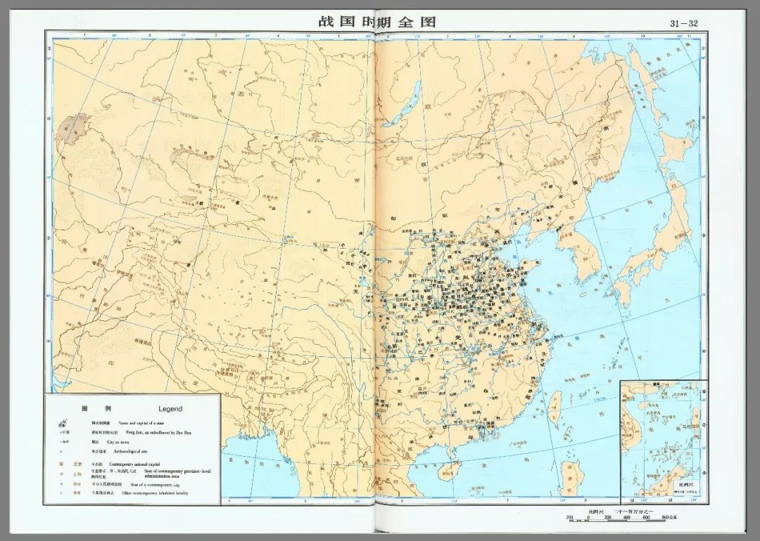 ▲战国时期全国图。(图片来源:《中国历史地图集》)大禹涂山之会召集诸侯,执玉帛者万国。武王伐纣,大会八百诸侯。春秋时期有百余国,战国初期只剩下了二十余国,诸侯国越来越少。战国七雄本身大都是多民族国家。齐国有东夷各族。秦国有西戎各族。燕国有狄族。楚国疆域最大,故后世柳永说:“千里烟波,暮霭沉沉楚天阔。”楚国有夷族、越族、濮族、蛮族。赵、魏、韩有原来狄族的许多后裔。七国疆域内的各民族与华夏族交往十分密切,已经形成大杂居、小聚居的状态。各民族逐渐与华夏族融合起来,共同推动中华文明发展。