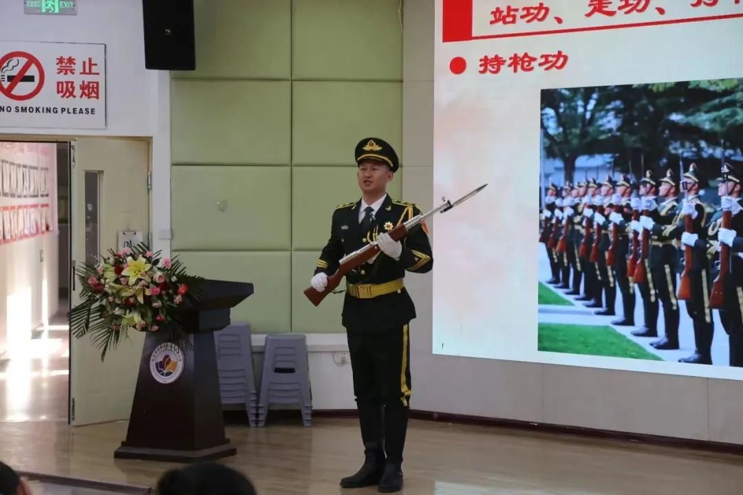 当天下午,昆区第一实验小学还邀请天安门国旗班战士现场向师生们宣讲国旗知识,并指导学校国旗护卫队队员规范相关动作和姿势。