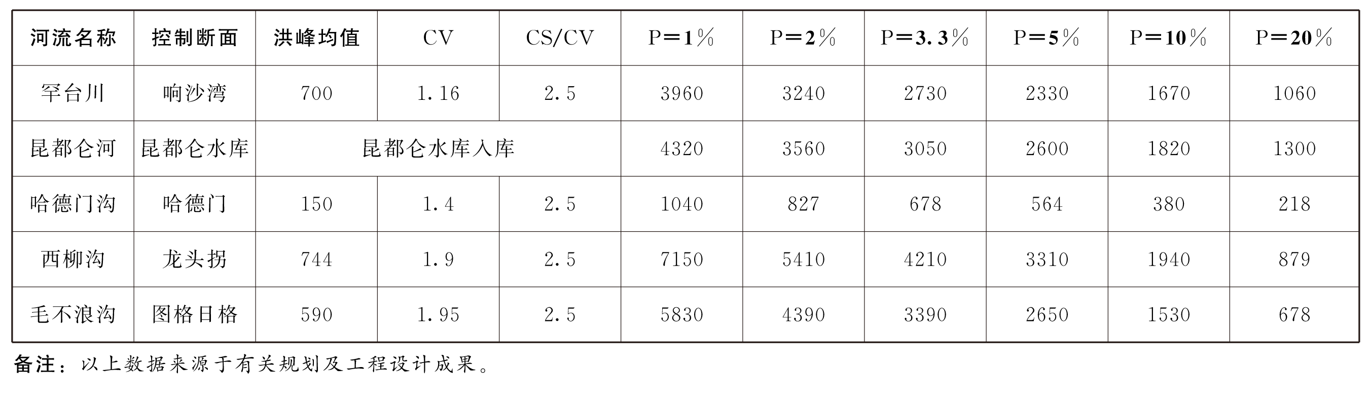 2.黄河流域、辽河流域、嫩江流域、海拉尔河流域主要支流控制断面设计洪水成果