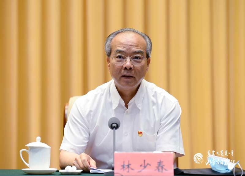 自治区党委副书记、政法委书记林少春主持会议。自治区领导刘奇凡、杨伟东、衡晓帆,自治区高级人民法院院长杨宗仁、自治区人民检察院检察长李琪林出席会议。