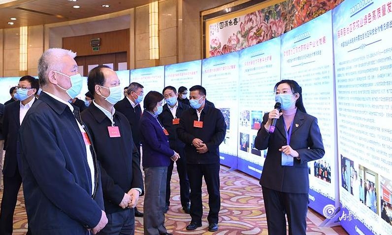 人大常委会主任石泰峰,自治区党委副书记、自治区主席布小林出席科技兴蒙合作推进会,并观看成就展。