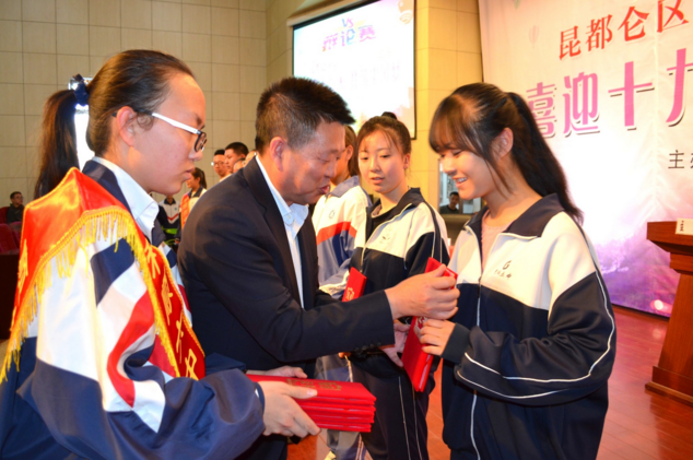 昆区教育局副局长石文明为 "优秀辩手" 颁奖