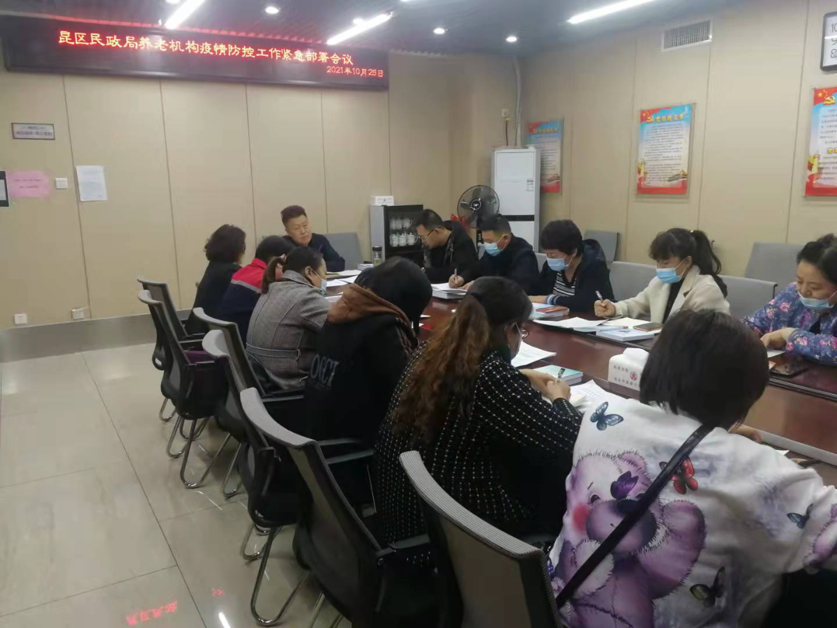关于召开昆区民政局养老机构疫情防控工作紧急部署会议的信息 2021年10月25日,根据上级部门、区委区政府对当前疫情防控工作的指示要求,昆区民政局紧急召集辖区养老机构负责人召开养老机构疫情防控工作紧急部署会议,会议由区民政局党组书记、局长刘伟主持召开,区民政局局务会成员云玉梅、区民政...