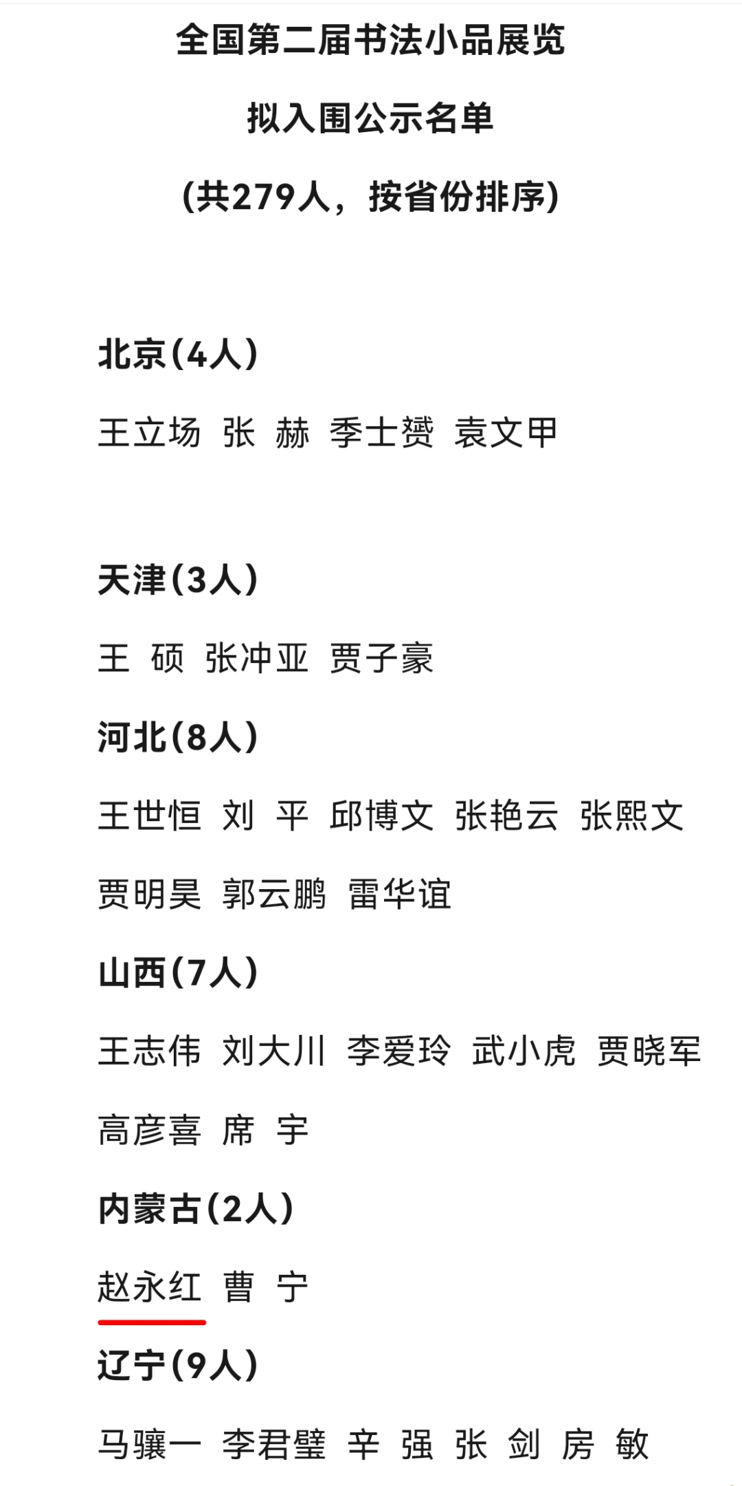 喜报 ‖ 昆区书法家协会副主席 昆区新的社会阶层人士赵永红 书法作品入围全国第二届书法小品展览-昆都仑区人民政府
