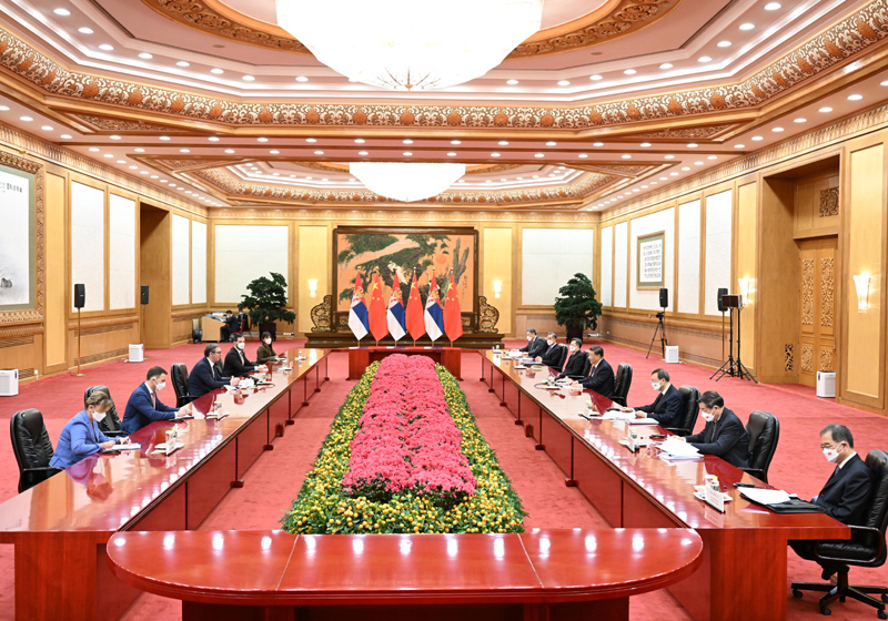 习近平欢迎武契奇来华出席北京冬奥会开幕式。习近平指出,中塞是“铁杆朋友”,两国有着高度政治互信,双边关系经受风云变幻考验历久弥坚,堪称国际关系典范。近年来,两国关系实现跨越式发展,双方落实一批基础设施、能源、产能等领域重要合作项目,在中东欧国家中位居前列。新冠肺炎疫情发生后,中塞守望相助、彼此支持,续写了两国友谊新篇章,在两国人民心中留下了美好记忆。