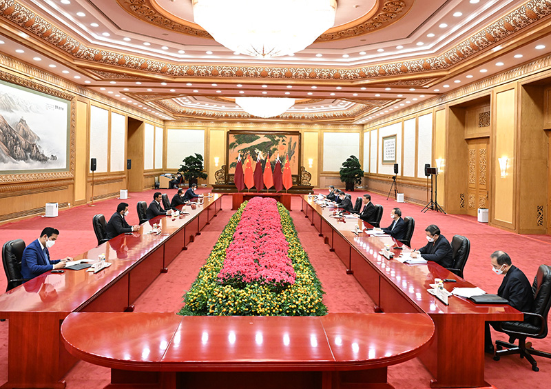 丁薛祥、杨洁篪、王毅、何立峰等参加会见。