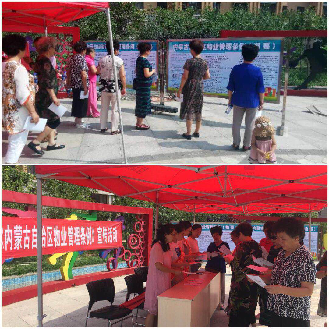 活动由区房管局组织,充分发挥 "四级管理" 体系职能,各街道(镇)办事处、社区、居委会工作人员积极配合参与,并邀请专业法律顾问参加。区别于以往集中宣传、地点单一、受惠人群有限的情况,本次活动在全区13个办事处和昆河镇分别设立宣传点,选择市场化物业管理、准物业管理等不同物业管理模式的小区同时开展宣传,设立宣传展板百余块,发放宣传材料5000余份,发动近万名业主参与其中,扩大了宣传活动范围,保证了宣传活动质量。活动中,工作人员统一佩戴绶带、发放自治区修订的物业管理条例宣传册、为小区业主详细讲解新修正的《内蒙古自治区物业管理条例》的具体内容,并对业主委员会的成立流程等进行宣传,同时邀请专业律师为业主就生活中遇到的物业相关法律问题答疑解惑,物业公司也就日常物业管理中存在的问题与对策业主们进行了沟通交流。
