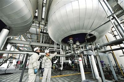 2月13日,包头市昆都仑区内蒙古鑫元硅材料科技有限公司一期10万吨颗粒硅生产线上,工作人员正在巡检设备。该公司运用硅烷流化床法生产的颗粒硅,为下游光伏产业提...