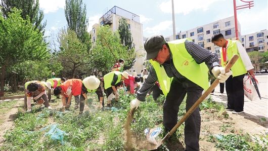 记者李强摄影报道黄河社区志愿者清除小区内的杂草7月3日,由昆区黄河西路街道黄河社区党委举办的“弘扬志愿精神创建文明城市共建和谐包头”志愿服务项...