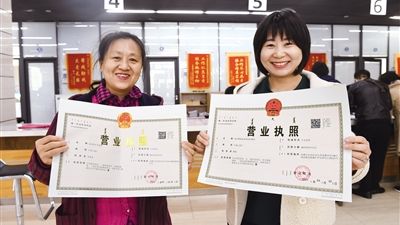 4月30日,包头市昆都仑区106小商品批发市场商户在展示刚更换的营业执照。当日,为优化营商环境,包头市昆都仑区组建行政审批和政务服务局,第一批将发改委、...