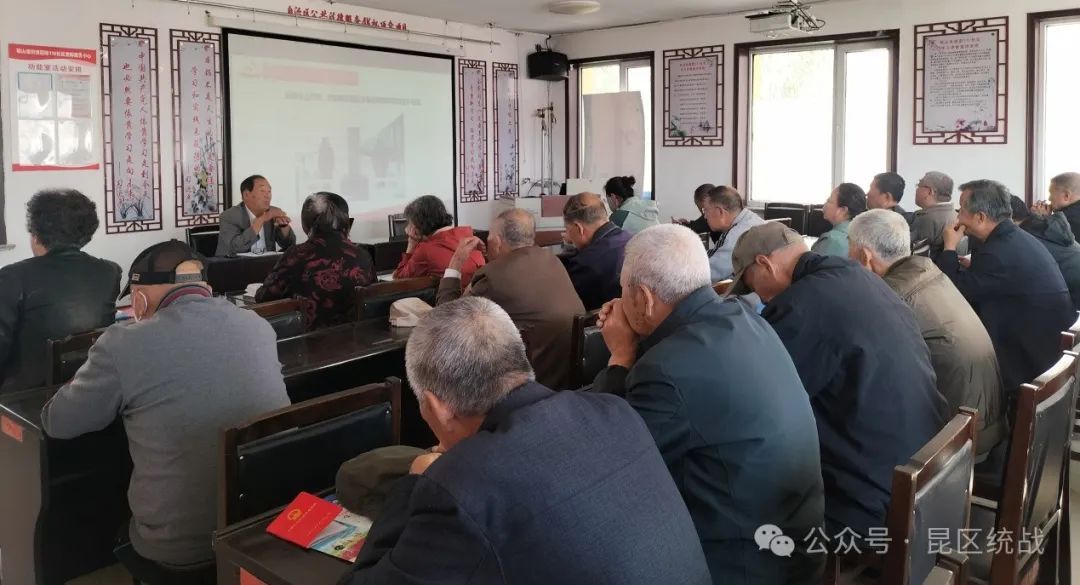 为推动内蒙古自治区第41个“民族团结进步活动月”工作有序进行,9月20日下午,鞍山道街道团11社区党委书记陈荣萍主持开展 “牢记嘱托 感恩奋进——铸牢中华民族共同体意识”宣讲活动。市区关工委“五老”报告团副团长、昆区“红石榴百人宣讲团”成员王学昆应邀到会做《凝心聚力办好两件大事 奋进中国现代化新征程》的宣讲报告。