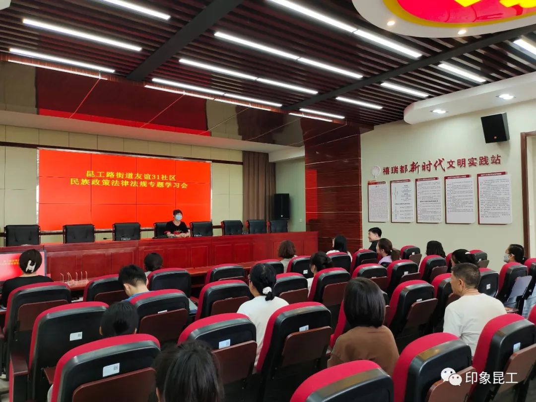 友谊31社区“红石榴家园”创建始终坚持党的领导,把增进思想政治共识摆在突出位置。开设民族政策课堂,将民族团结知识送到辖区居民和各民族群众身边,统一思想,凝聚共识。