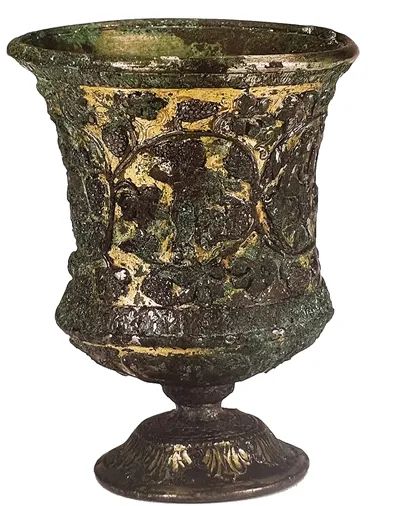 山西博物院藏北魏葡萄藤纹鎏金铜高足杯。