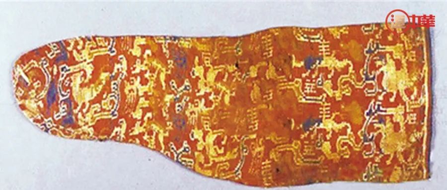 ▲东汉“宜子孙”玉璧,青州市博物馆藏。(图片来源:青州市博物馆官网)令人称奇的是,这一在中原地区流行的“时尚”,跨越数千公里,传到了西域绿洲的精绝国。在民丰北大沙漠一号夫妻合葬墓里,人们发现男女墓主人均身穿昂贵的丝绸服饰:男主人穿着长袍、裤、袜和手套,女主人则穿着内上衣、外上衣、衬衣、裙子、袜子和袜带,显示出墓主人显贵的身份,应属上层统治阶层。其中,男主人所着锦袍下摆底襟一部分、锦袜、手套以及男女主人头枕的鸡鸣枕,均为“延年益寿大宜子孙”锦所制。