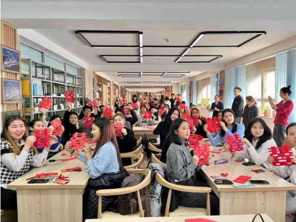 比什凯克国立大学孔子学院“印象中国”绘画比赛和剪纸文化体验课。(图片来源:新疆大学官网