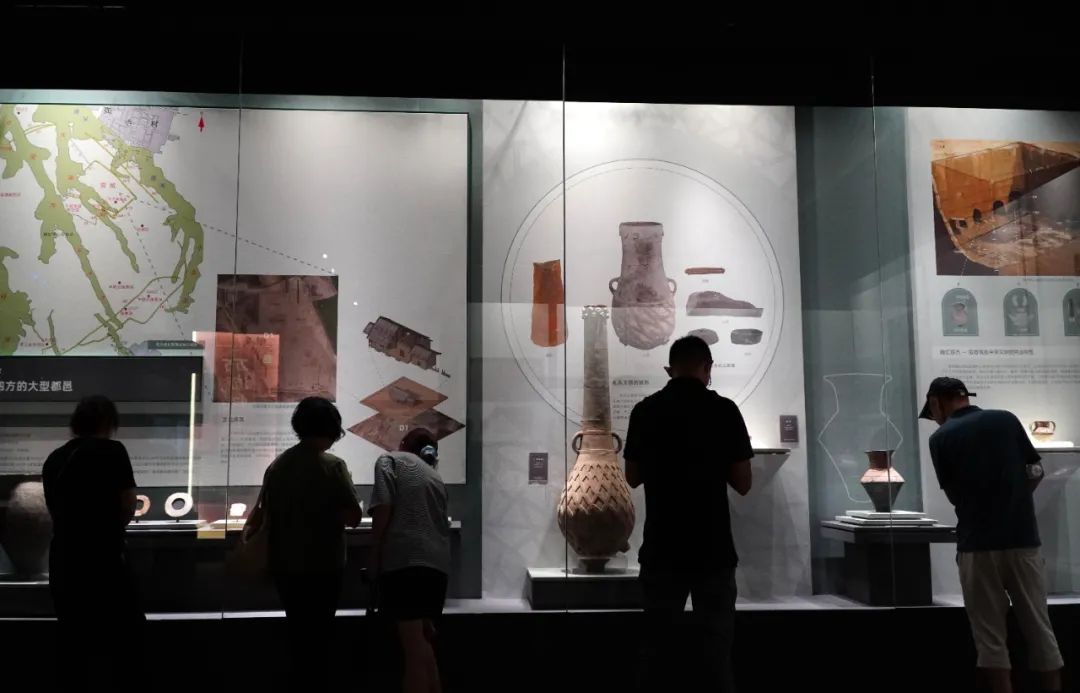 7月12日,观众山东省博物馆参观中华文明起源与早期发展——考古中国重大项目研究成果展。该展览聚焦中华文明起源和早期国家诞生的关键阶段、重点地域,涵盖了山东、河南、湖北、浙江等8省31处遗址的335件(套)文物。新华社记者 徐速绘 摄
