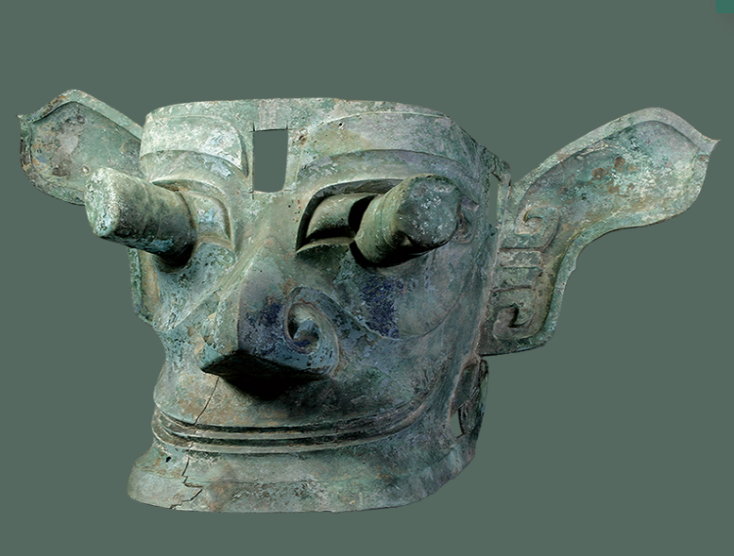 ▲戴金面罩青铜人头像(商代) 三星堆博物馆藏。(图片来源:图虫创意)