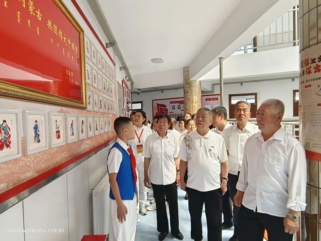 近日,友谊十九四社区的30余名老党员受邀来到友谊大街第二十六小学,了解学校民族团结教育工作开展状况 。 学校坚持党对教育工作的全面领导,以铸牢中华民族共同体意识为主线,打造“1345”工程,即建设一条民族团结文化长廊;打造党员、团员、队员三级石榴籽民族团结进步讲解团;面向教师、学生、家长、社会四个群体开展示范教育;通过强化管理、深挖课堂内涵、加强家校共建、突出宣传教育、丰富活动载体等五项举措,做好民族团结进步示范创建工作。 老党员们观看学校拍摄的《同心学习、筑梦未来》专题片,参观了学校民族团结进步教育长廊。学校石榴籽讲解团的党员、团员、队员结合展板,为老党员们讲解“三千孤儿入内蒙”“齐心协力建包钢”等民族团结故事,详细介绍了学校民族团结进步点创建工作的开展情况。 这些老党员大多是包钢退休职工,是“齐心协力建包钢”的参与者和见证者。他们对学校开展的民族团结进步教育工作点赞,并表示要继续发挥余热,和学校共同讲好民族团结故事,为昆区创建全国民族团结进步示范区贡献力量。